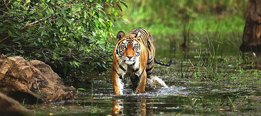 Bandhavgarh National Tiger Reserve in Madhya Pradesh features among the top-notch tiger reserves of India as it is a relatively compact forest area at just 428 sq km with the highest population of tigers than anywhere else in India. It is popularly vouched that nine of ten tourists would certainly spot a tiger during a visit to the coveted tiger reserve, especially in the Tala range that is abundant in water holes.